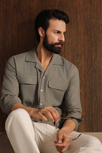Charcoal Cuban Double Pocket Jersey Shirt